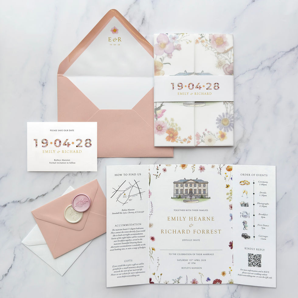 Discover the elegance of Hearne Wedding Invitations from Feel Good Invites! Our Venue Sketch Wild Flowers Gatefold blends intricate illustrations of your venue with charming wildflower designs, making each invitation a true masterpiece. Crafted from luxury card, these Floral Wedding Invites not only exude sophistication but also feature a convenient QR code for easy guest RSVPs. Let the enchanting details of our Wildflower design set the tone for your special day. Order now and make your wedding invitations as unforgettable as your love story!
